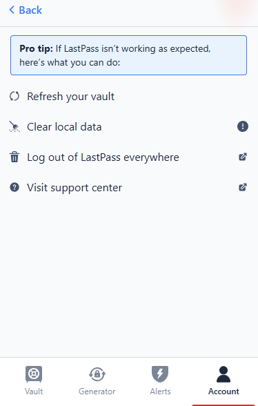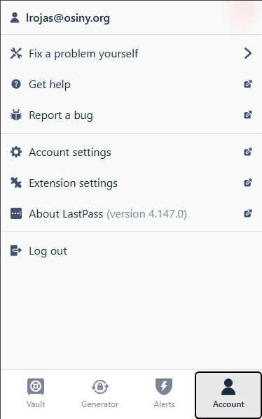 Click on the extension and click on the Account and then click on Fix a problem yourself